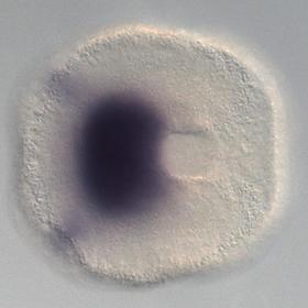 Wildtype expression of the Terebratalia tranversa otx (Orthodenticle) ortholog. Gene originally identified from EST TTC00824 [15G07] (Dunn et al., 2008). Complete sequence ORF sequence obtained by 3’ RACE. Orthology confirmed by Bayesian and ML phylogenetic analyses.