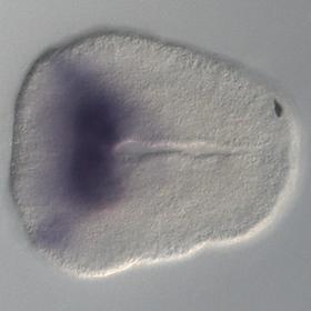 Wildtype expression of the Terebratalia tranversa otx (Orthodenticle) ortholog. Gene originally identified from EST TTC00824 [15G07] (Dunn et al., 2008). Complete sequence ORF sequence obtained by 3’ RACE. Orthology confirmed by Bayesian and ML phylogenetic analyses.