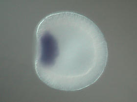 In situ hybridization of NvOtxB on Nematostella embryos of different developmental stages.
