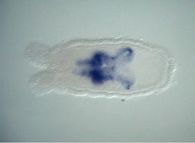 NvHh1 expression in the early juvenile is limited to the aboral region of the pharynx and the two directive mesenteries.